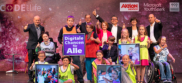 Alle Kinder lernen Programmieren: An Berliner Bildungseinrichtungen sind erstmals gemeinsame Workshops für Kinder mit und ohne Behinderung gestartet. Dabei lernten sie Logo kennen, eine einfache und leicht zu erlernende Programmiersprache für Kinder. Beim „Summer Coding Camp“ programmierten sie außerdem zusammen mit anderen Schülern aus ganz Deutschland. „Code your Life“ ist Teil der Initiative „Microsoft YouthSpark“ und wird vom 21st Century Competence Center im Förderverein für Jugend und Sozialarbeit e. V. umgesetzt. Im neuen inklusiven Projekt, das von der Aktion Mensch unterstützt wird, kommen barrierefreie Lernmittel zum Einsatz. Technik und Didaktik passen nun zu den Bedürfnissen aller Kinder. Aus den Ergebnissen der Pilotphase entwickelt das Team Lehrmaterialien – damit künftig auch andere Bildungseinrichtungen ihre Programmierkurse inklusiv ausrichten können.