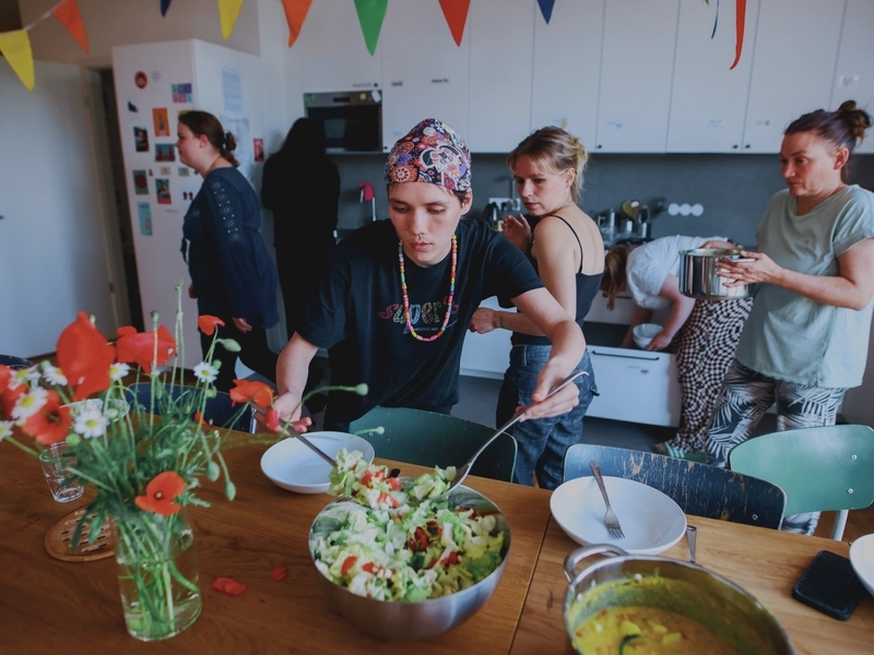 Schon vor dem Einzug hatten sich die „Super 8“ auf das Leben in der Wohngemeinschaft vorbereitet. Fachkräfte standen ihnen dabei zur Seite, halfen, den WG-Alltag zu strukturieren und erste Kontakte zu Nachbar*innen und Institutionen im Quartier zu knüpfen. Ein Dienst für Budgetbegleitung unterstützte sie dabei, die nötigen Anträge zu stellen und die Assistenzleistungen zu organisieren. So stand dem Einzug ins WG-Leben nichts mehr im Wege.