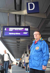 Anderen Menschen helfen und die Gesellschaft mitgestalten - das wollen auch Menschen mit Behinderung. In der Bahnhofsmission Essen gehören sie bereits ganz selbstverständlich zum Team der ehrenamtlichen Mitarbeiter. Gemeinsam mit den Ehrenamtlichen ohne Behinderung bilden sie jeweils ein Tandem und helfen Reisenden beim Ein-, Aus- und Umsteigen, geben Auskunft und unterstützen bei Fragen zu Aufenthalts- und Übernachtungsmöglichkeiten oder wenn es um die Begleitung von Menschen im Rollstuhl oder Kindern geht. Aktuell sind drei solcher Tandems unterwegs, die in Schulungen auf ihre Aufgaben vorbereitet wurden. Damit die Angebote der Essener Bahnhofsmission auch von allen verstanden werden, ist auch ein Flyer in Leichter Sprache geplant.