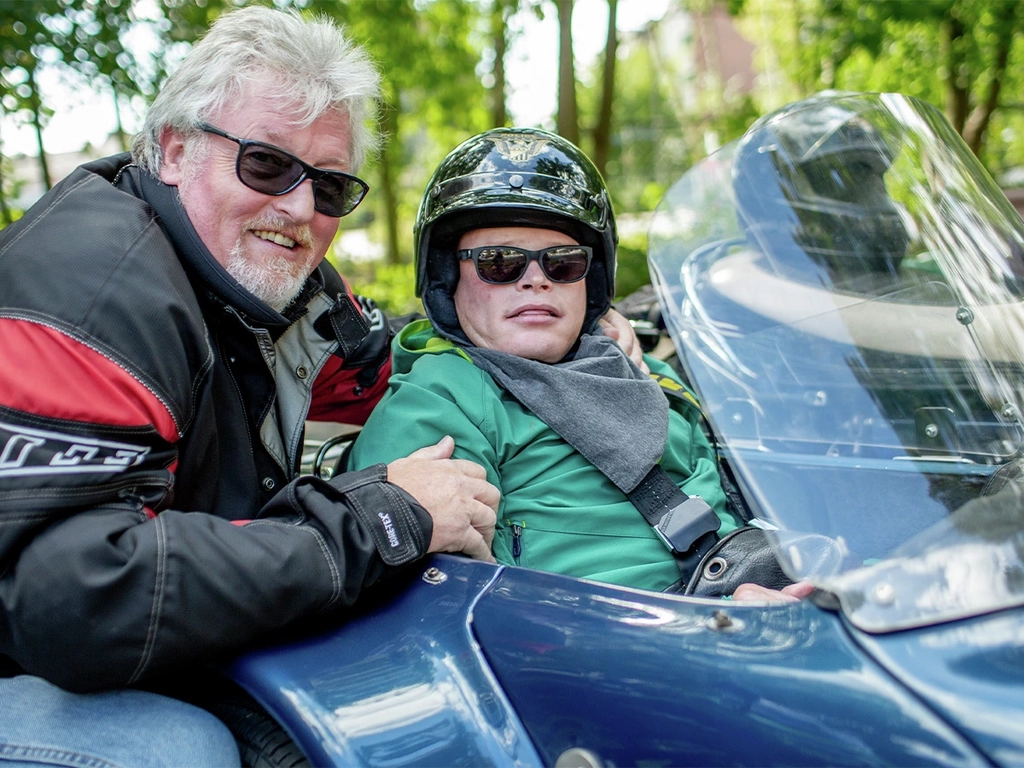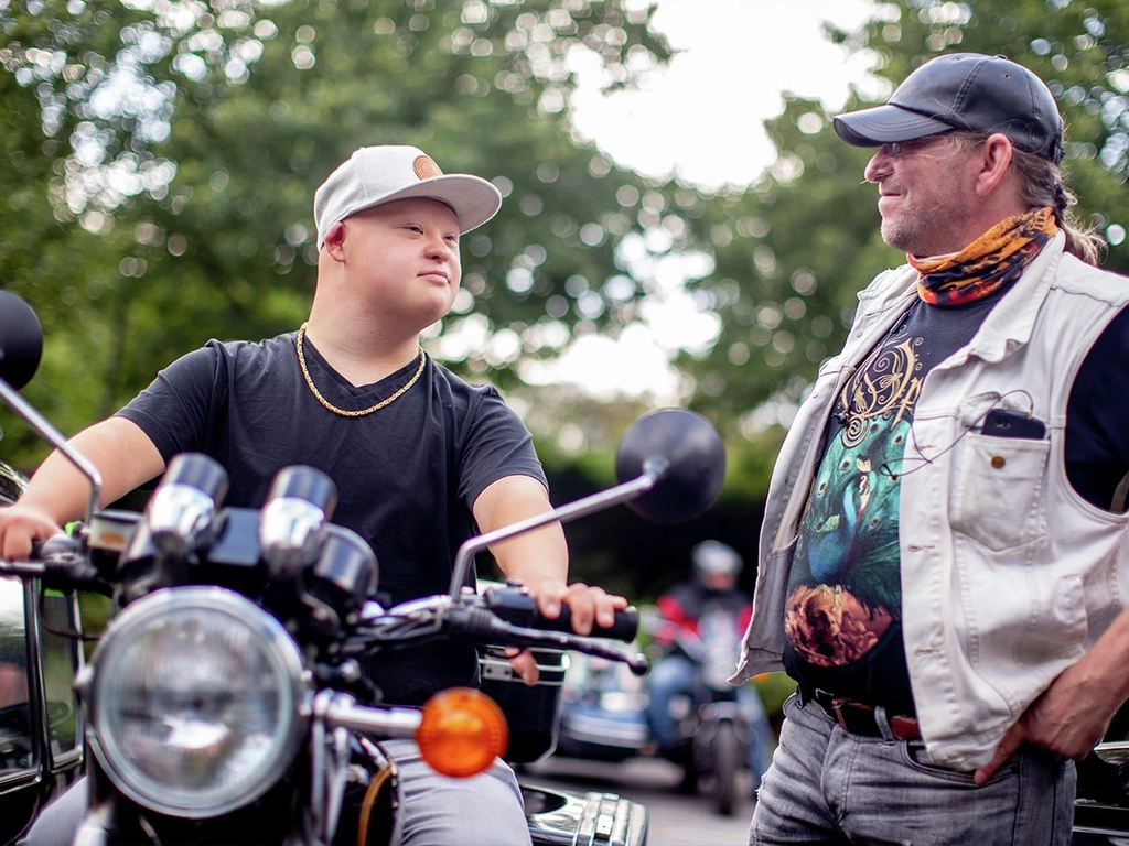 Beim Club „Biker mit Doppelherz“ in Gladbeck gibt es immer ein spannendes Programm. Mal werden Ausfahrten gemacht – in die Umgebung oder auch einfach mal zur nächsten Pommesbude. Mal trifft man sich in geselliger Runde und schaut Filme und Sendungen zum Thema. Und wenn Corona vorbei ist, wollen die Gladbecker auch an großen überregionalen Bikertreffs teilnehmen. Unter den Mitarbeitenden und im Unterstützerkreis der Lebenshilfe in der Region gab es schon länger leidenschaftliche Motorradfahrer*innen. Zusammen mit Menschen mit Behinderung, die sich fürs Thema interessieren, entwickelten sie die Idee des inklusiven Clubs „Biker mit Herz“. Eine Maschine mit Beiwagen im nostalgischen Look konnte eigens dafür angeschafft werden. Außerdem stellen Unterstützer*innen ihre privaten Motorräder regelmäßig für Clubtreffen zur Verfügung. So sind die „Biker mit Doppelherz“ in Gladbeck und Umgebung längst zum Blickfang und zu Botschafter*innen einer inklusiven Freizeitgestaltung geworden.