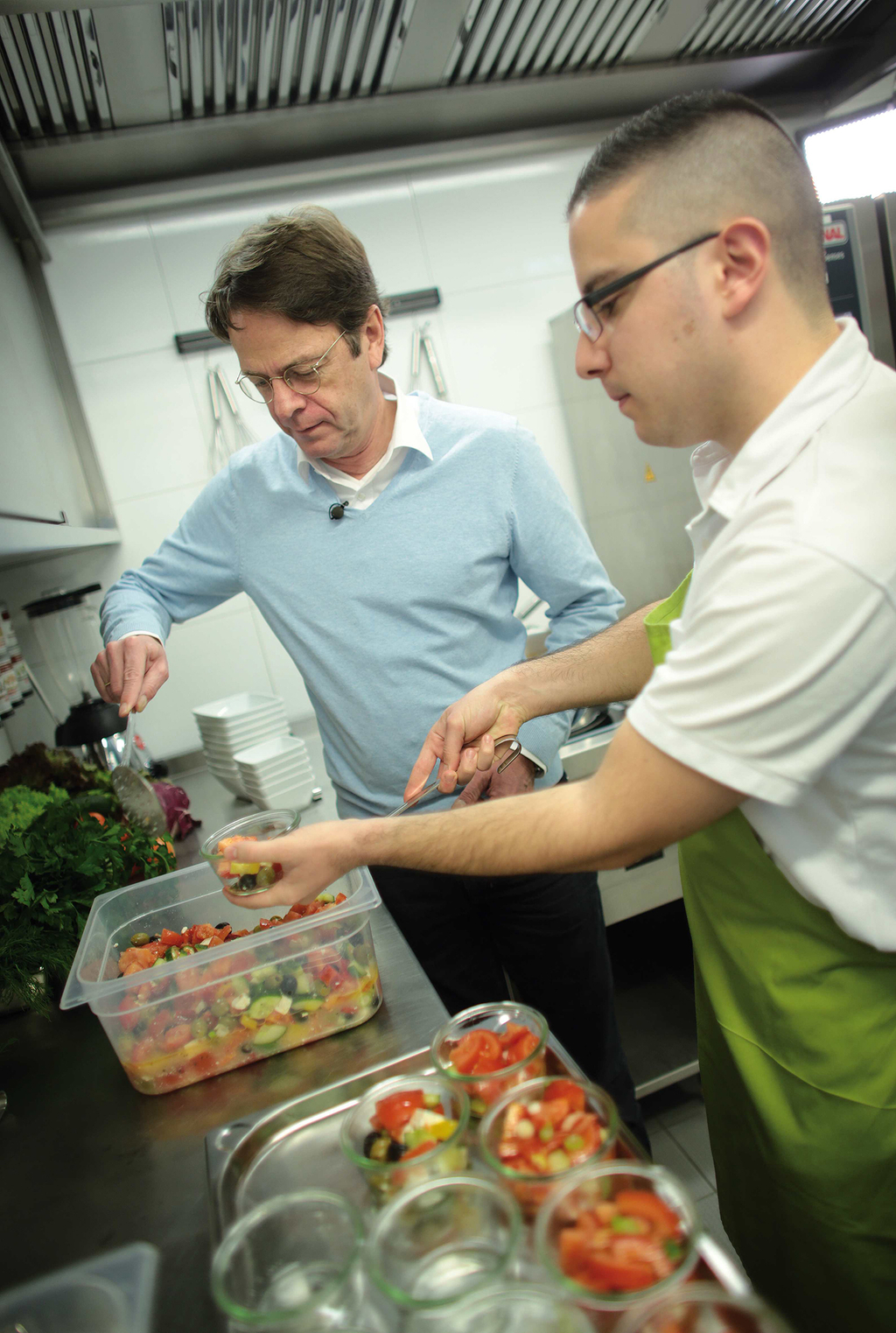 Hell, gemütlich, frisch und lecker: Im Bistro „Die Henne lacht“ in Wiesbaden können sich Gäste mit und ohne Behinderung mit handgemachten Sandwiches, leckeren Burger und frischen Salaten verwöhnen lassen. Im barrierefreien Selbstbedienungs-Restaurant an der Welfenstraße steht ein inklusives Mitarbeiter-Team am Kochtopf und am Tresen. Fast die Hälfte der Angestellten hat eine Behinderung. Mit dem Betrieb will der Betreiber, die Gemeinnützige JOB GmbH, auch ein Zeichen für Inklusion setzen: „Wir sehen Menschen mit ihren Fähigkeiten, nicht mit ihrer Behinderung“, lautet das Motto. Wie gut das Miteinander klappt, erlebte auch Aktion Mensch-Botschafter Rudi Cerne bei einem Besuch in Wiesbaden: Das Wir-Gefühl des Teams und die gute Stimmung waren einfach ansteckend.