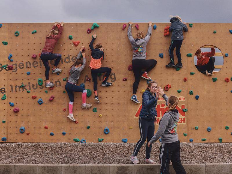 Gemeinsam Spaß an der Bewegung haben, voneinander lernen und Berührungsängste abbauen: Darum geht es bei einem inklusiven Boulder-Projekt im Neustädter Bezirk Lachen-Speyerdorf. Kinder und Jugendliche mit und ohne Behinderung wagen sich hier gemeinsam an die Kletteranlage und wachsen so gemeinsam über sich hinaus.