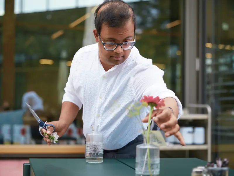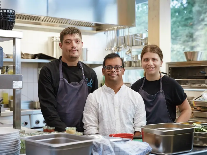 Insgesamt 16 sozialversicherungspflichtige Vollzeitstellen konnten durch das Projekt geschaffen werden. Menschen mit Behinderung werden hier entsprechend ihren Fähigkeiten, Vorlieben und Neigungen in verschiedenen Arbeitsbereichen eingesetzt: zum Beispiel im Service, an der Theke oder im Büro. Die Einarbeitung der Mitarbeitenden wird vom Sozialdienst der AiS inklusiv gGmbH begleitet.