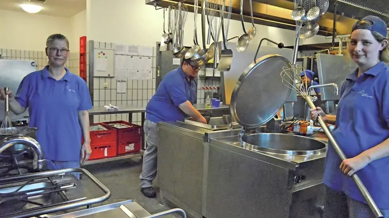 In der Großküche des Unternehmens mit Sitz in Büdelsdorf werden täglich über 1.700 Essen zubereitet. Zu den Kund*innen des Tochterunternehmens der Brücke Rensburg-Eckernförde e.V. gehören Betriebskantinen, Pflegeheime, Schulen und Kitas.