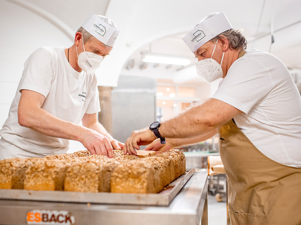 Mehr Arbeitsplätze für Menschen mit Behinderung auf dem allgemeinen Arbeitsmarkt schaffen: Das ist das Ziel der Ecksberger Integrationsbetriebe GmbH. Bisher war das Unternehmen vor allem in den Bereichen Gebäudereinigung und Warentransport tätig. Mit der Biobäckerei „Ecksbäcker“ in Mühldorf ist nun ein neues Segment dazu bekommen. 15 Mitarbeiter*innen mit und ohne Behinderung haben in der Bäckerei und dem dazugehörigen Café feste, sozialversicherungspflichtige Jobs gefunden. Für den Aufbau und die Umsetzung des Vorhabens konnten die Ecksberger Integrationsbetriebe einen erfahrenen Bäckermeister aus der Region gewinnen. Gebacken wird hier mit nach Bioland-Kriterien erzeugten Rohstoffen der Ecksberger Landwirtschaft. Das barrierefreie Café inmitten schöner Landschaft ist zu einem beliebten Ziel für viele Ausflügler*innen und Anwohner*innen geworden. Durch das selbstverständliche Miteinander von behinderten und nicht behinderten Mitarbeiter*innen in Bäckerei und Café trägt das Inklusionsunternehmen auch dazu bei, Vorurteile und Berührungsängste abzubauen.