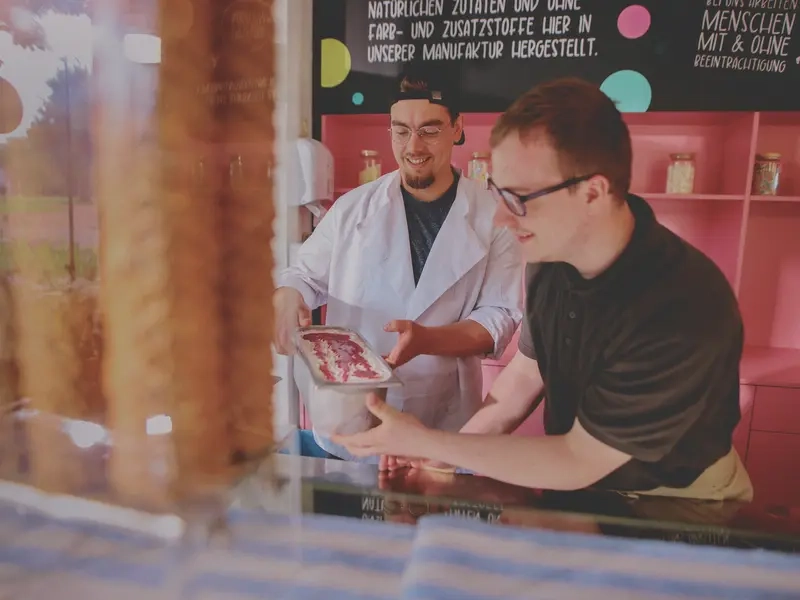 Ob beim Anrühren leckerer Eissorten oder im Verkauf: Das Café „Konfetti“ in Erfurt bietet Menschen mit und ohne Behinderung viele Möglichkeiten mitzuarbeiten.