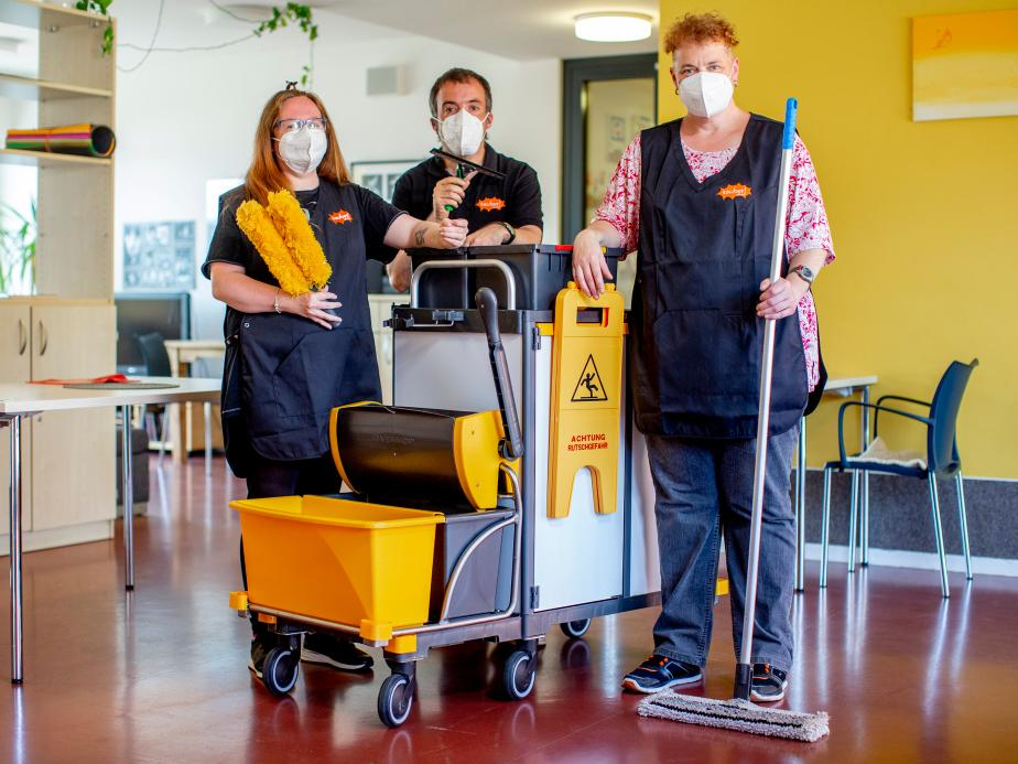 Der Firmenname spricht für sich selbst: Das Team der „sauber! gGmbH“ in Nidda sorgt dafür, dass es in den Gebäuden seiner Kundschaft blitzt und blinkt. Als erstes Inklusionsunternehmen im hessischen Wetteraukreis beschäftigt das gemeinnützige Unternehmen 13 Mitarbeiter*innen mit und ohne Behinderung.
