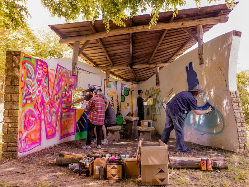 Mit zwei bekannten Spraykünstlern aus der Region startete die AWO eine Reihe von Kunst-Workshops. Viele Teilnehmer*innen hielten zum ersten Mal eine Spraydose in der Hand, um damit Bilder und Formen zu schaffen. Sie merkten schnell: Kunst hat nichts mit Alter oder persönlichen physischen oder geistigen Voraussetzungen zu tun. Und in einer diversen Gruppe, in der jeder und jede eine andere Perspektive einbringt, entsteht ein ganz besonderes Gemeinschaftsgefühl. Außerdem können die Teilnehmenden hier abschalten, ganz sie selbst sein und zur Ruhe kommen.