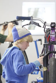 Das eigene Fahrrad unter fachkundiger Anleitung kostengünstig reparieren – das ist in der Hobbyradwerkstatt der Sozialen Hilfe Marburg e.V. für Menschen mit und ohne Behinderung möglich. Unterstützung erhalten die Hobbytüftler dabei von einer pädagogischen Fachkraft mit Spezialwissen in Fahrradtechnik. Die Werkstatt, die sich unter dem Dach einer umgebauten Sattelei befindet, ist gleichzeitig ein Ort der Begegnung: Hier können Menschen mit und ohne Behinderung nicht nur gemeinsam an den Rädern basteln. Die regelmäßige Zusammenarbeit und der Austausch untereinander vermitteln auch Sicherheit und Vertrauen. Neben festen Arbeitsplätzen bietet die Werkstatt für Menschen mit Behinderung auch die Ausbildung zum ehrenamtlichen Coach an, damit das Wissen später an andere Nutzer weitergegeben werden kann.