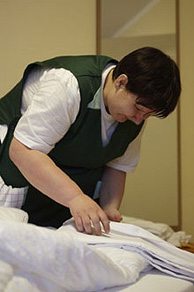 Betten machen, Zimmer reinigen... Manja ist überall dort zur Stelle, wo sie im Hotel Alanda gebraucht wird: Im Rahmen eines Integrationsprojektes hat sie hier endlich einen barrierefreien Arbeitsplatz gefunden. Das motivierte Team aus Kollegen mit und ohne Behinderung betreut die Gäste im altmärkischen Seehausen auch kulinarisch. Deswegen empfiehlt sich das kleine Familienhotel für besondere Anlässe wie Hochzeiten oder Tagungen.