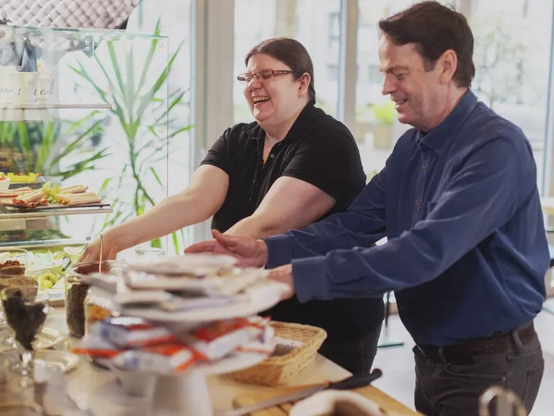 Die Mitarbeitenden werden auch in ihrer beruflichen Laufbahn unterstützt: Durch passgenaue Weiterbildungsmaßnahmen bauen sie ihre Kompetenzen aus und erhöhen so ihre Chancen, um sich auf dem allgemeinen Arbeitsmarkt weiterentwickeln zu können. Die inklusive und barrierefreie Umgebung kommt auch bei den Gästen des Hotels Claudius gut an, die hier Vielfalt in der Arbeitswelt als etwas ganz Praktisches erleben können.