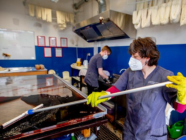 Vom Waschen der Wolle über das manuelle Einkneten der Farben bis zum Trocknen und Verpacken: In Handarbeit erschafft das inklusive Team echte Unikate. Rund die Hälfte der Mitarbeiter*innen der Wollfärberei Weimar lebt mit einer Behinderung. Jede*r bringt sich mit den eigenen Stärken ins Team ein. Das Inklusionsunternehmen inclusio-Weimar gGmbH ist noch in weiteren Geschäftsfeldern tätig: Sowohl im Bereich Geräteprüfung technischer Anlagen als auch in einer kleinen Eismanufaktur sind Mitarbeiter*innen mit und ohne Behinderung beschäftigt. In der Kreativwerkstatt Kerzenstall führt das Team interessierte Gäste zudem in die Kunst des Kerzengießens ein.