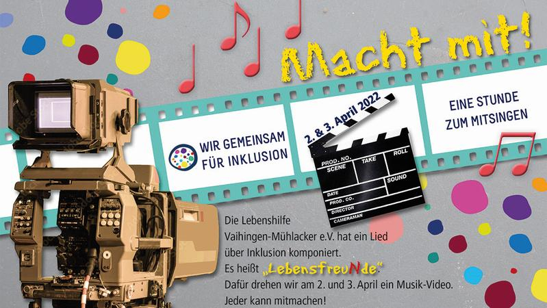 Die Lebenshilfe Vaihingen-Mühlacker möchte gemeinsam mit Menschen mit und ohne Behinderung einen Song mit dem Titel „LebensfreuNde“ schreiben und dazu ein Musikvideo drehen. Dadurch soll ein bewegendes Lied entstehen, das für mehr selbstverständliches inklusives Miteinander wirbt und viele unterschiedliche Menschen zusammenbringt.
