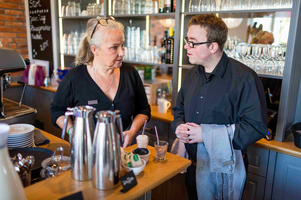 Früher gehörte das historische Gebäude zur Gemeindeverwaltung. Heute ist es ein lebendiges Zeichen für eine inklusive Arbeitswelt in Oldenburg. Im Inklusionshotel "Villa Stern" und dem dazugehörigen "Café Schnuppe" arbeitet ein engagiertes 12-köpfiges Team. Die Hälfte der Beschäftigten hat eine Behinderung. Im Service, bei der Reinigung und am Empfang haben sie feste Jobs gefunden. Die Arbeitsplätze wurden auf die Bedürfnisse der Mitarbeiter zugeschnitten. Im Café gibt es zum Beispiel Bestellkarten mit Piktogrammen, auf denen die Gäste ihre Speisen und Getränke ankreuzen können. So können auch Menschen mit geringen Lesefähigkeiten problemlos als Kellner arbeiten. Nicht nur das Team ist vielfältig- die Zimmer und Suiten sind es auch: Ob sportlich, orientalisch, sachlich oder auch romantisch ausgestattet – barrierefrei sind sie alle.