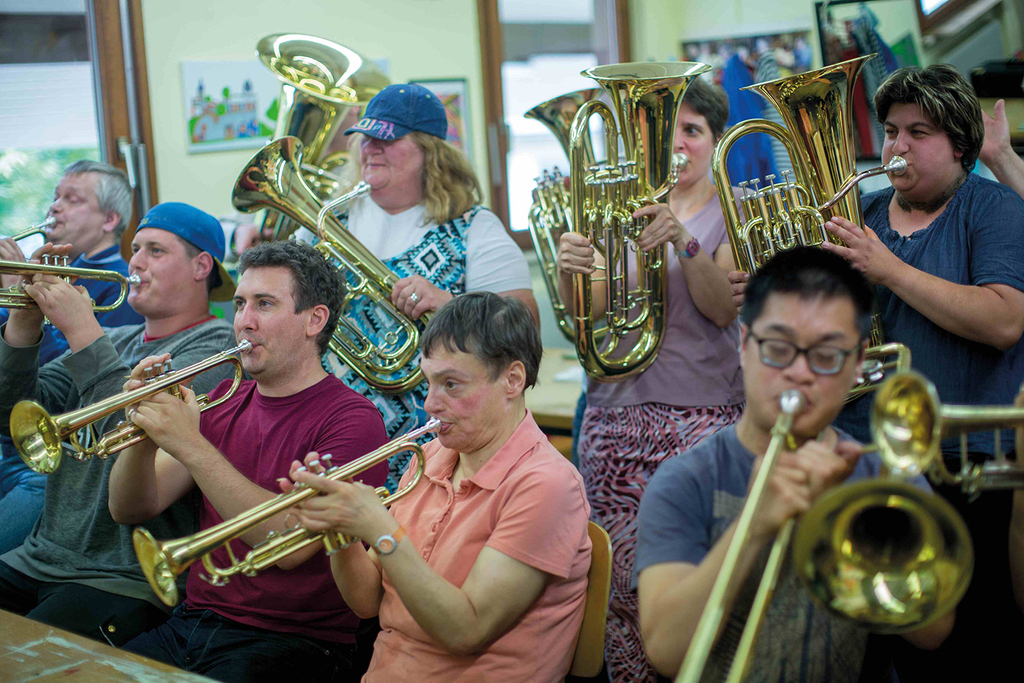Begeisterte Fans der Blasmusik waren einige Mitarbeiter der Werkstatt in Rosenharz schon lange. Schließlich wollten sie nicht länger bloß Zuhörer bleiben, sondern selbst ein Instrument erlernen. Die St. Gallus-Hilfe machte es möglich und gewann Mitstreiter und Musiklehrer hinzu: Die „Brass Band Rosenharz“ war geboren.