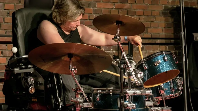 Die inklusive Bühne des Blauschimmel Ateliers bietet Musiker*innen mit und ohne Behinderung die Möglichkeit, gemeinsam aufzutreten. Dadurch soll das künstlerische Potential von Menschen mit Beeinträchtigungen im öffentlichen Kulturleben sichtbarer werden.
