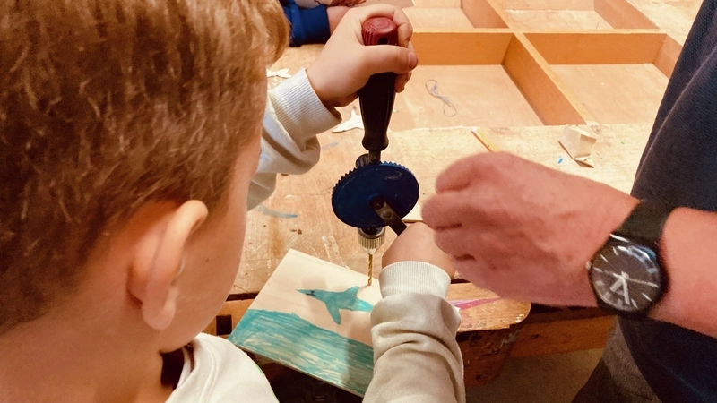 Unter Anleitung erlernen die Kinder verschiedene Techniken der Holzverarbeitung wie Sägen, Bohren und Feilen. Vom Entwurf und der selbstständigen Planung bis hin zur Fertigstellung der Werkstücke liegt die Herstellung der Holzobjekte in ihrer Hand. Auf diese Weise erleben sie ihr Handeln als produktiv und wertvoll. Im Vordergrund stehen der Spaß, das inklusive Miteinander und die Kreativität. Jedes Kind wird nach seinem Können individuell gefördert.