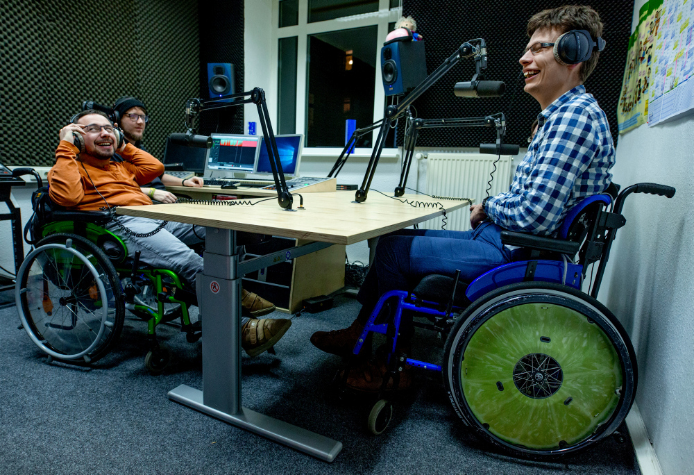 Beim freien Radio Blau in Leipzig sind alle Bürger eingeladen, ehrenamtlich Radio zu machen. „Bei uns gehen auch regelmäßig Beiträge auf Sendung, die das Miteinander von behinderten und nicht behinderten Menschen zum Thema haben“, sagt Anja Thümmler vom Radio Blau. Verantwortlich dafür sind die Macher von „Radio Inklusive“. Alle zwei Wochen trifft sich das Team von Menschen mit ganz unterschiedlichen körperlichen und geistigen Behinderungen und ehrenamtlichen Redakteuren ohne Behinderung. Gemeinsam überlegen sie, welche Themen sie angehen wollen. Dann führen sie Interviews, machen Umfragen, suchen passende Musik aus und produzieren die Beiträge. Oft berichten die Redakteure von ihren eigenen Erfahrungen: zum Beispiel von Barrieren, auf die sie stoßen, oder von Möglichkeiten, die das Miteinander befördern. Die Sendungen stärken nicht nur die mediale Kompetenz und das Selbstbewusst der Radiomacher. Sie sorgen auch für mehr Aufklärung zum Thema Inklusion bei ihren Zuhörern in Leipzig.