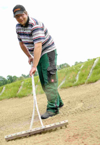 Das Grün auf dem Golfplatz in Schuss halten, die Gäste im Restaurantbereich bedienen oder in der Verwaltung dafür sorgen, dass alles rund läuft: Für die zurzeit 20 Mitarbeiter mit und ohne Behinderung gibt es im Paderborner Haxterpark immer viel zu tun. Sie alle sind das Herz und die Seele des Freizeitparks für behindertengerechten Sport und barrierefreie Bewegung. „Wir möchten mit gutem Beispiel vorangehen und zeigen, dass auch der Golfsport Menschen mit und ohne Behinderung aktiv zusammenbringen kann. Inklusion, gerade im alltäglichen Sport, bewirkt sehr viel und ist hier vor Ort sehr gut umsetzbar“, sagt Helmut Böhmer, Geschäftsführer der inklusiven Sporteinrichtung Haxterpark. Die Grundlage für dieses Engagement entstand 2011, als mit dem Neubau eines Gasthauses an der großen Golfanlage der Bedarf an zusätzlichem Personal geschaffen wurde. Bis heute haben hier 16 neue Arbeitsplätze für Menschen mit verschiedenen Behinderungen eine Anstellung gefunden – und es dürfen noch mehr werden.