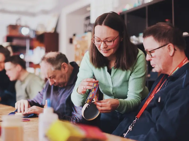 Im Offenen Kulturtreff sorgt die Initiative darüber hinaus für inklusive Begegnungen. Jung und Alt, Menschen mit und ohne Behinderung sowie Menschen mit unterschiedlicher Herkunft kommen hier zusammen. In Kooperation mit dem Riebeckstift Halle treffen sich Menschen mit und ohne Behinderung, um mit verschiedenen Materialien zu arbeiten. Ein Töpfer-Angebot bietet Entschleunigung, Entspannung und Kreativität für Jugendliche und junge Erwachsene in Wohngruppen und sozialen Diensten. Und auch im Klöppeltreff und in der Upcycling-Kinder-Werkstatt sind alle Interessierten herzlich willkommen.