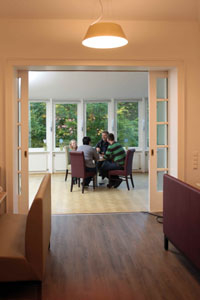 Ein Ort zum Atemholen, Entspannen, ein Stück weit Verantwortung in andere Hände legen – das bietet der neue Kupferhof des Vereins „Helfende Hände“ im Norden Hamburgs. Als Wohlfühl-Kurzzeit-Zuhause für Kinder mit einer schweren Behinderung bietet das seit seinem Umbau fast barrierefreie Haus für sie und ihren Angehörigen alles, was es für eine Auszeit vom anstrengenden Pflegealltag braucht: zwölf freundliche Einzelzimmer für die Gastkinder, Eltern- und Geschwisterappartements für bis zu 24 Angehörige, helle und modern eingerichtete Kreativ- und Gemeinschaftsbereiche, einen Wintergarten und ein parkähnliches Außengelände für weitere erholsame Aktivitäten im Grünen. Im Mittelpunkt der therapeutischen Einrichtung stehen die bis zu 27-jährigen Jugendlichen und Kinder mit Behinderung, die hier ganzheitlich versorgt und über die integrative Arbeit zur Teilnahme am gesellschaftlichen Leben befähigt werden. Bis zu vier Wochen können sie hier verbringen – und haben die Eltern Luft, neue Kraft zu tanken. Gut erholt und entspannt geht es dann gemeinsam und mit neuer Energie zurück in den Alltag.