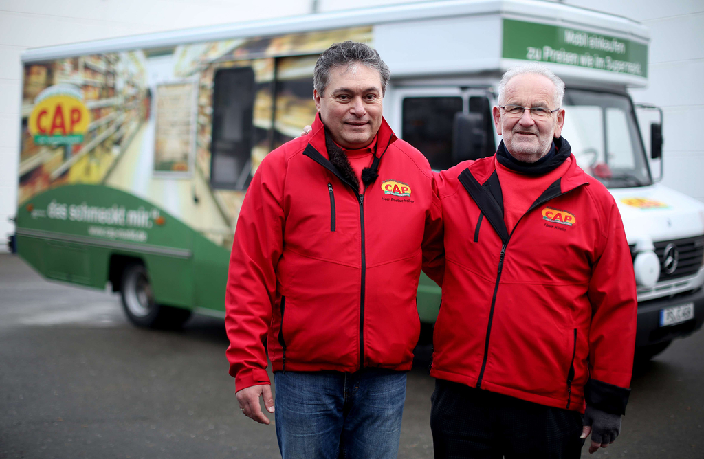 Mit mehr als 700 Produkten an Bord tourt das „CAP Mobil“ mehrmals in der Woche durch kleinere Ortschaften im Landkreis Südwestpfalz. Vor allem ältere Menschen wissen es zu schätzen, dass ihnen die CAP-Mitarbeiter Obst und Gemüse, Milchprodukte, Konserven, Zeitschriften und vieles mehr verlässlich anliefern. Ohne Aufpreis schließen sie auf innovative Weise eine Versorgungslücke in der ländlichen Region. Die Pirminius-Werk gGmbH betreibt auch zwei reguläre CAP-Märkte in Thaleischweiler-Fröschen und Zweibrücken. Von hier aus wird das „CAP Mobil“ bestückt. Die Integrationsfirmen bieten 30 Vollzeitkräften, davon 14 Mitarbeitende mit Behinderung, einen festen Arbeitsplatz. An Bord des „CAP-Mobils“ sind jeweils eine Person ohne und eine Person mit Behinderung. Neben frischen Lebensmitteln bringen sie so auch den Gedanken der Inklusion mit in die Dorfmitte.