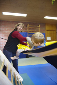 Wer als Erwachsener selbständig lebt und aktiv an der Gemeinschaft teilnimmt, hat dies in der Regel in Kindheit und Jugend erlernt. Dieser Erkenntnis folgt auch die Heilpädagogische Kindertagesstätte „St. Hildegard“ in Bad Neuenahr-Ahrweiler, die möglichst früh und ganzheitlich bei der persönlichen Förderung ihrer kleinen Besucherinnen und Besucher ansetzt. Zurzeit betreut die integrative Einrichtung der Caritas 47 Kinder mit und ohne Behinderung. Für die 36 Kinder mit Behinderung, die Schwierigkeiten mit der Wahrnehmung haben oder nicht so gut sprechen und sich bewegen können, bietet die Kita pädagogische und therapeutische Hilfen in enger Zusammenarbeit mit den Eltern an. Dabei stehen die Gemeinschaftsfähigkeit sowie die Selbstständigkeit im lebenspraktischen Bereich der Kinder im Vordergrund. Für eine optimale Förderung benötigte die Einrichtung ein 'Motorik-Zentrum' für die Ergotherapie, das mit Unterstützung der Aktion Mensch in Höhe von 3.004 Euro angeschafft werden konnte.