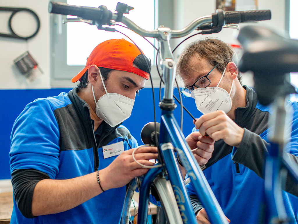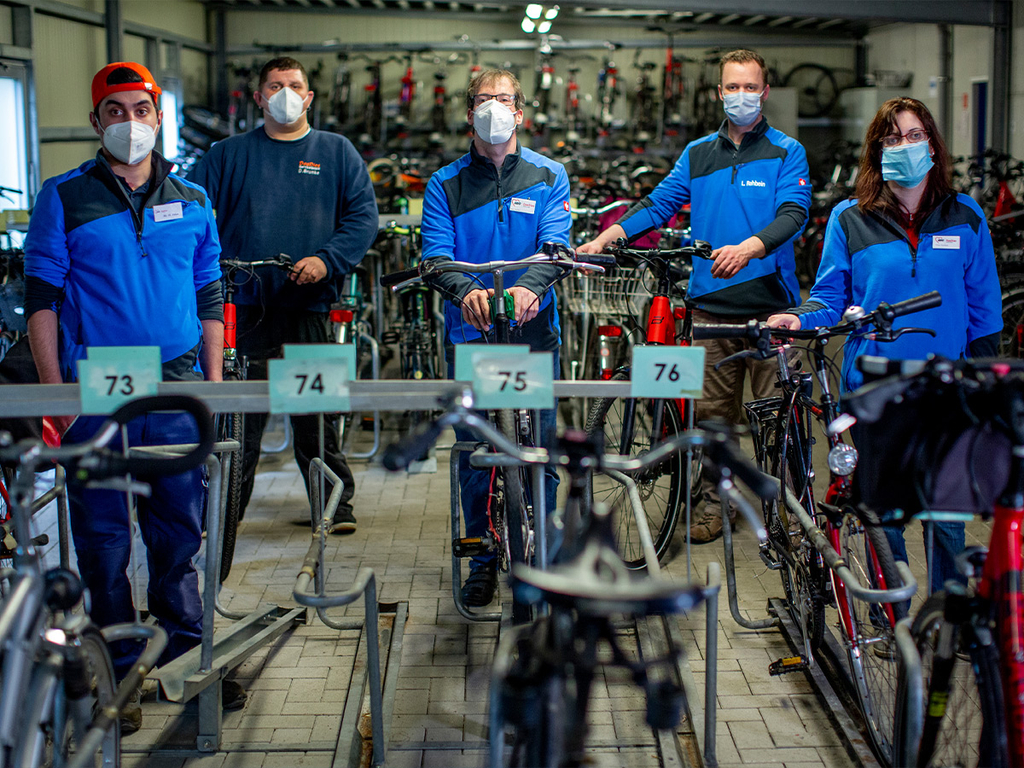 Fahrräder sicher parken, ausleihen und reparieren lassen: Die Mitarbeiter*innen der Radstationen des Integrationsunternehmens DasDies in Kamen bieten Dienstleistungen rund ums Zweirad an. An den Radstationen in Bönen, Kamen, Lünen, Schwerte, Unna und Werne sorgen inklusive Teams für einen Rundum-Service für alle Fahrradfahrer*innen.