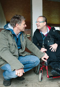 „Der Mensch im Mittelpunkt“ lautet das Motto der Ramper Werkstätten des Diakoniewerks Neues Ufer in Schwerin. Hier arbeiten rund 256 Menschen mit Behinderung in Bereichen wie Tischlerei, Wäscherei oder im Garten- und Landschaftsbau. Auch der Tierhof gehört dazu. Er ist der beliebteste Ort auf dem Gelände und Anziehungspunkt vieler Beschäftigten und Klienten der tiergestützten Therapie. Drei Tierpfleger mit unterschiedlicher Behinderung kümmern ich hier um das große und kleine Vieh – die Lamas, Esel, Minischweine, Seidenhühner, Kaninchen, Meerschweinchen, um das Pferd, den Hund und die Katz'. Im Kontakt mit den Tieren kann jeder sein Lieblingstier finden und seine ganz persönliche Beziehung zu ihm aufbauen. Besonders positiv wirkt sich die Arbeit mit Tieren auf die Senioren und Kinder der Ramper-Einrichtungen aus. “Für Menschen mit einer Verhaltensstörung oder Demenz sind diese Tiere wie Schlüssel zu inneren Welten“, sagt Werkstattleiter Berno Thim. „Manchmal reicht schon ein Streicheln und die Sonne geht auf.“