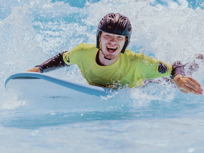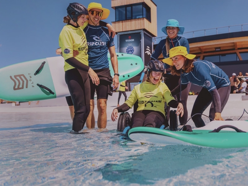 Ob mit oder ohne Vorerfahrung, im Rollstuhl oder zu Fuß, sehend oder sehbehindert – bei den „Wavepool Days“ sind alle herzlich willkommen. Speziell ausgebildete Coaches und freiwillige Helfer*innen unterstützen alle Surfbegeisterten im Wasser und beim Umgang mit dem Surfboard. Unter dem Motto „Ride together“ erleben die Teilnehmenden unabhängig von persönlichen Beeinträchtigungen das unvergleichliche Gefühl, auf der Welle zu reiten.