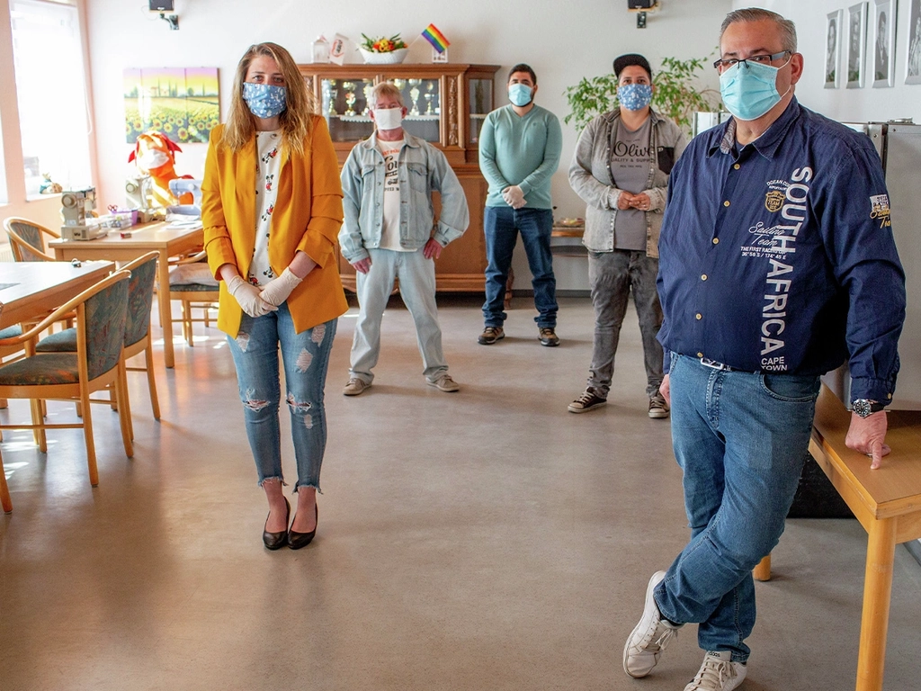 Der AWO Selbsthilfegruppen Verwaltungsverein im Mönchengladbacher Stadtteil Neuwerk ist für seine Mitglieder und Menschen in der Region da – auch in Zeiten der Pandemie, wenn persönliche Begegnungen ausfallen müssen. Viele Menschen mit psychischen Krankheiten und Behinderungen können oder mögen zurzeit das Haus nicht verlassen. Ihnen bringen ehrenamtliche Helfer*innen täglich unbürokratisch Essen auf Rädern an die Haustür. Bei Bedarf werden auch zusätzlich Lebensmittelpakete der Tafel mitgeliefert. Dabei geht es um weit mehr als „nur“ um eine warme Mahlzeit und Dinge des täglichen Bedarfs. Auch das Gefühl, in schwierigen Zeiten nicht allein zu sein, ist sehr wertvoll für die Betroffenen. Gekocht und verpackt werden die Mahlzeiten von der örtlichen Catering-Firma Borger, bei der auch viele Menschen mit Schwerbehinderung arbeiten. So stellt das Projekt gleichzeitig sicher, dass schwerbehinderte Mitarbeiter*innen dort derzeit nicht von Kurzarbeit betroffen sind.