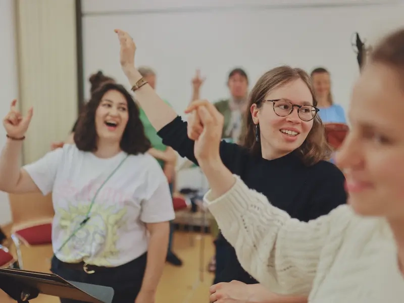 Wenn die Mitglieder von „Sing & Sign“ auftreten, erwartet die Zuschauer*innen ein besonderes ästhetisches Erlebnis: Mit Musik, Gebärden, Gesang, Text und Bewegung macht das inklusive Ensemble klassische Musik für hörende und hörbehinderte Menschen gleichermaßen erlebbar.