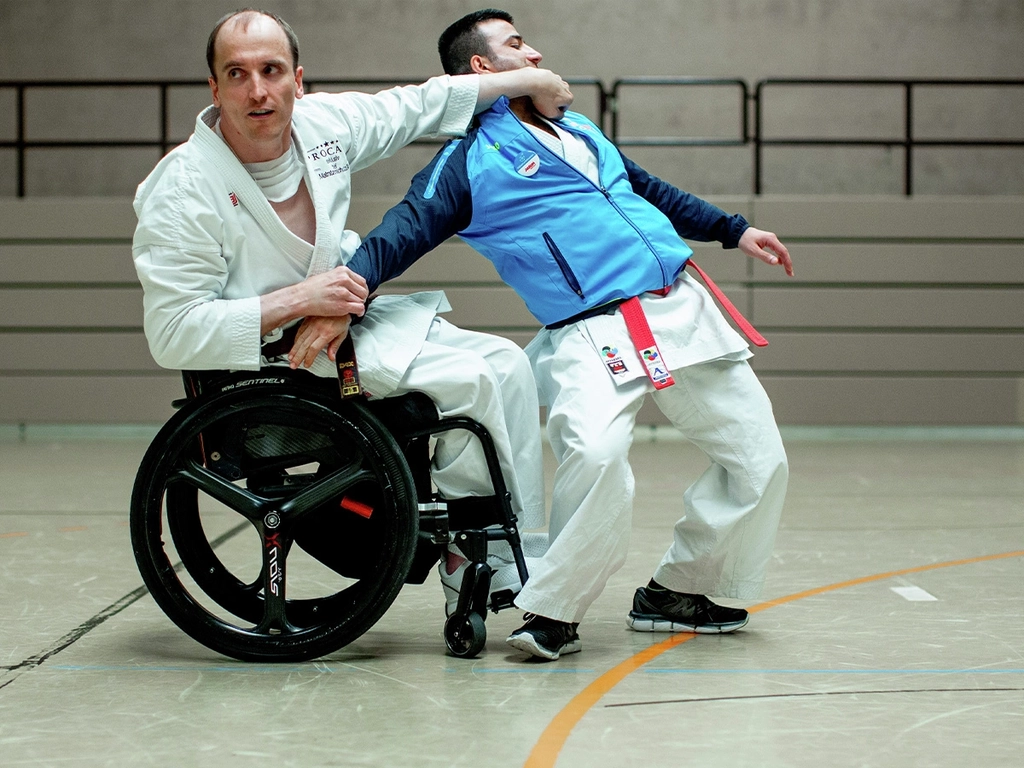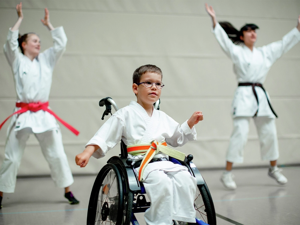 Körper und Geist stärken, Konzentration und Selbstbeherrschung trainieren: Mit Kampfsportarten wie Karate können Menschen mit und ohne Behinderung gleichermaßen etwas für ihre Gesundheit tun. Bei einem Projekt im Landkreis Darmstadt-Dieburg trainieren die Teilnehmer*innen nicht nur gemeinsam – auch die Trainer-Teams werden jetzt inklusiv aufgestellt.