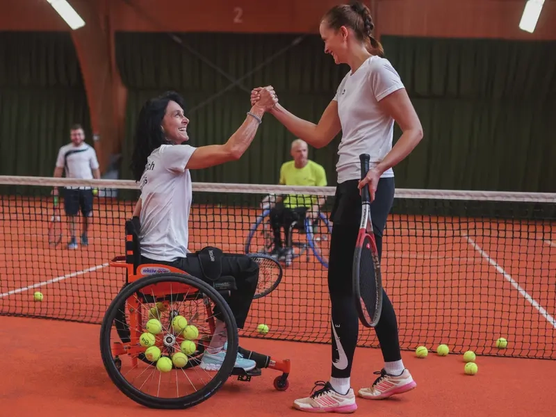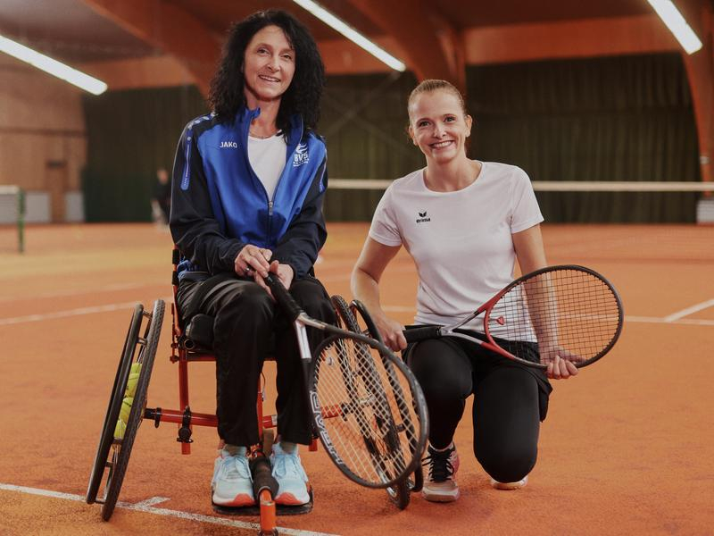 Ob jung oder alt, ob mit Behinderung oder ohne: Beim neuen inklusiven Sportangebot des SV Mitterteich können alle mitmachen. „Rollstuhl- und Fußgänger-Tennis“ bedeutet: Je eine Person mit und eine ohne Rollstuhl bilden ein Doppel-Team und schlagen die Bälle gemeinsam übers Netz.