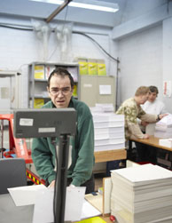 Menschen mit schwerer Behinderung haben am 1. Arbeitsmarkt kaum Chancen auf Beschäftigung. Diese Männer und Frauen dauerhaft und nachhaltig in Arbeit zu bringen ist das Ziel des Integrationsbetriebes Vision gGmbH in Kehl-Kork. Seit 2005 beschäftigt das Unternehmen gleichermaßen Menschen mit und ohne Behinderung in verschiedenen Produktionsbereichen und eröffnet damit auch Gehörlosen oder Menschen mit einer Lernbehinderung die Teilhabe am sozialen Leben. Zum Beispiel in der betriebseigenen Kartonagenfabrikation: Hier produziert ein eingespieltes Team unter fachlicher Anleitung jährlich zwischen 700 und 800 Tonnen farbigen Kartons. Als Endprodukt entstehen Trennlaschen und Trennblätter für den täglichen Bürobedarf, die von führenden Katalogversendern deutschlandweit vertrieben werden. „Die Förderung der Aktion Mensch hat bewirkt, dass wir Menschen mit Behinderung auch nach Ablauf des geförderten Zeitraums beschäftigen können“, sagt der Geschäftsführer der Vision gGmbH Berthold Löffler heute. Aktuell arbeiten 17 Personen in dem Integrationsbetrieb, neben zwei Auszubildenden auch acht Menschen mit Behinderung. Mit rund 44.000 Euro hat die Aktion Mensch zuletzt die Kosten für Anleitungspersonal mitfinanziert.