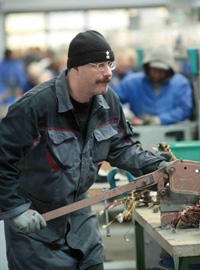 Ihr Auftraggeber ist die Weißer Rabe-Gruppe München. Ihr Arbeitsauftrag lautet: Elektroschrott wiederverwerten und entsorgen. Das heißt: alte Herde und Waschmaschinen ausweiden. Computer zerlegen. Wertvolle Rohstoffe auch aus ausrangierten TV-Geräten und Radios zurückgewinnen und alle Schadstoffe daraus bestmöglich entsorgen. Die Arbeit der Mitarbeiterinnen und Mitarbeiter des Münchener Unternehmens ist nicht nur nachhaltig und umweltbewusst. Sie ist gleichzeitig der Start ins eigene Berufsleben. Denn die Weißer Rabe -Gruppe ist ein Integrationsbetrieb, der mit einem breit gefächerten Angebot an Beschäftigungsmöglichkeiten Menschen mit Behinderung oder psychischer Erkrankung ausbildet und für den allgemeinen Arbeitsmarkt qualifiziert. Viele Mitarbeiter haben seit Beginn des Unternehmens als Integrationsbetrieb bereits den Sprung in eine dauerhafte Beschäftigung geschafft. Unterstützt werden sie dabei von 60 geschulten Fachkräften, die sie motivieren, in ihren Fähigkeiten bestärken und ihre beruflichen und sozialen Kompetenzen entwickeln helfen.