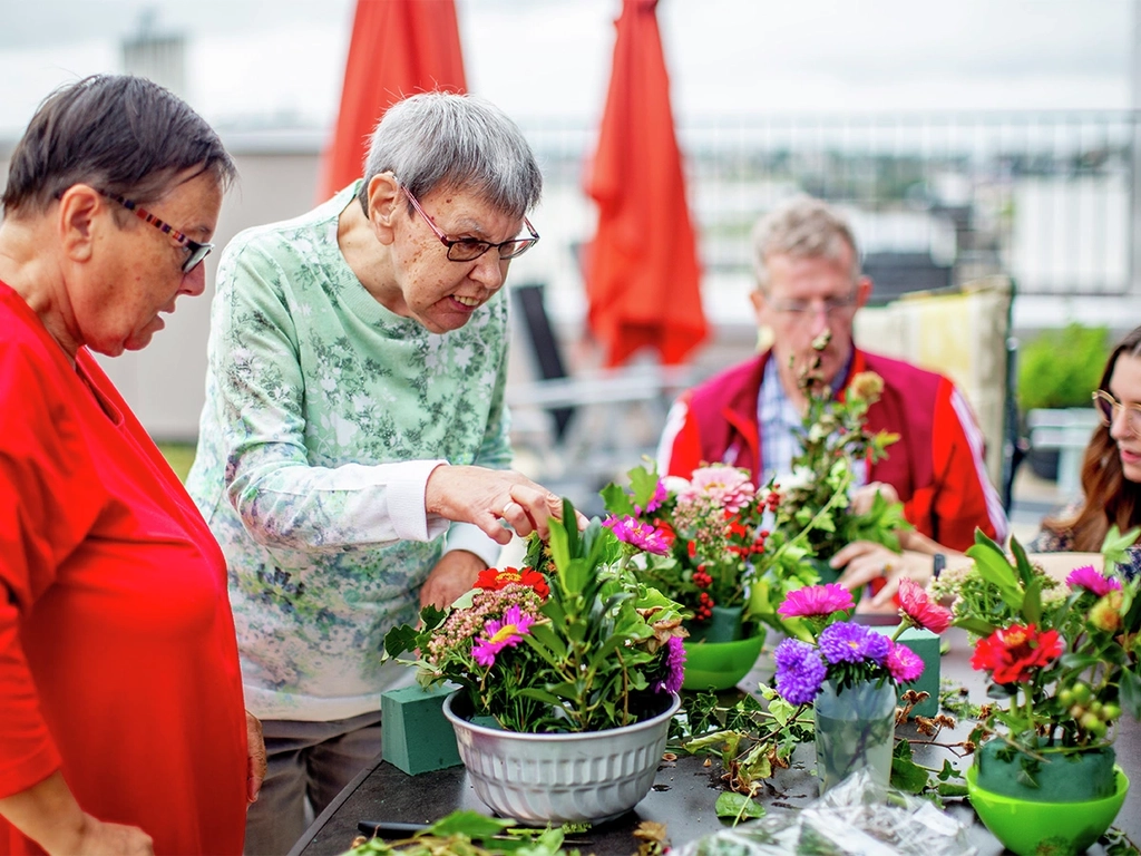 Gemeinsam leben, kochen und den Alltag gestalten: Die sechs Mitbewohner*innen der WG am Neckarbogen leben ein unabhängiges Leben im Ruhestand. Die nötige Assistenz erhalten sie vom Team des Ambulant Betreuten Wohnens der Offenen Hilfen in Heilbronn. Mit dem Projekt „Gemeinsam Leben am Neckarbogen“ fördert die Organisation das selbstständige Leben von älteren Menschen mit Behinderung. Das Motto lautet: „So viel Unterstützung wie nötig – so viel Freiheit und Selbstbestimmung wie möglich“. In unmittelbarer Nachbarschaft der Senioren-WG gibt es noch weitere inklusive Wohngemeinschaften, so dass für Gesellschaft und soziale Kontakte gesorgt ist. Im Herbst wird die Heilbronner Senioren-WG außerdem noch jüngeren Zuwachs bekommen. Dann zieht ein Student ohne Behinderung mit ein. Er wird seine Mitbewohner*innen im Alltag unterstützen und profitiert zugleich vom mietfreien Wohnen – und von der alltäglich gelebten Inklusion.