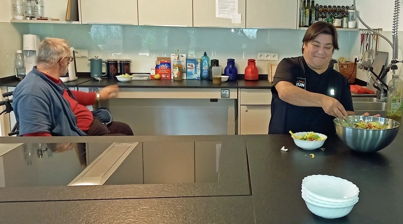 In der Arche-Wohngemeinschaft in Landsberg leben acht Menschen mit geistiger Behinderung gemeinsam mit vier Assistent*innen in einer WG.