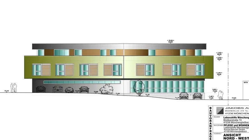 In einem Neubau im Mönchengladbacher Stadtteil Wickrath entstehen sieben barrierefreie Apartments. Sie sind für Menschen mit Behinderung bestimmt, die selbstständig in Wohngemeinschaften leben möchten, dabei aber auf dauerhafte Begleitung und Unterstützung angewiesen sind. Das Haus liegt inmitten eines normalen Wohnviertels.