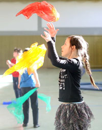 Denn fünf der fünfzehn Kinder und Jugendlichen haben eine Behinderung, aber gemeinsam sind sie ein Team. Seit Sommer 2012 trifft sich die Gruppe ein Mal wöchentlich und übt – immer ein Stück über die eigenen Grenzen hinaus. „Dabei lernen die Kinder, aufeinander zu achten und ein Gefühl dafür zu entwickeln, dass jeder seinen Platz hat in der Gruppe“, so die Projektleiterin und Theaterpädagogin Tanja Felten. Ein Zirkusprojekt als Lebensschule eben.