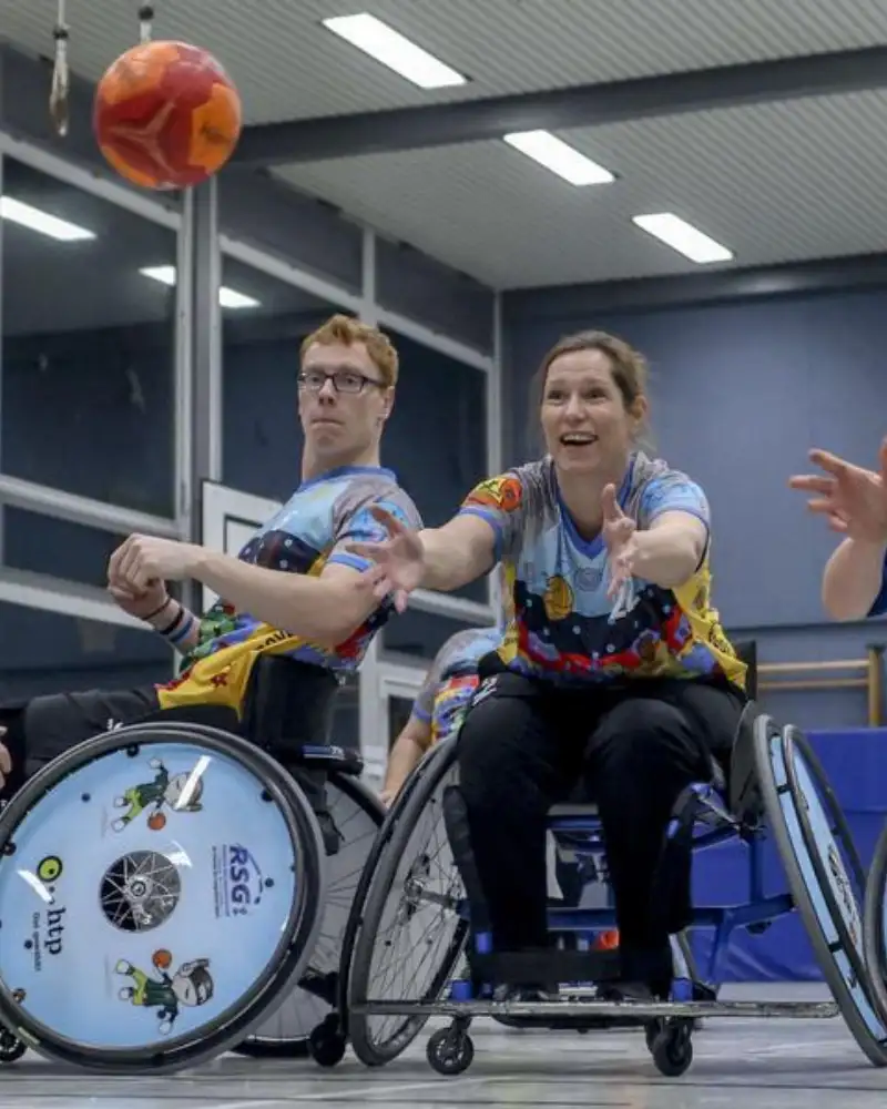 Die „RSG Blue Bandits Hannover“ treffen sich jede Woche zum regelmäßigen Training. Mit Sportrollstühlen, einem Ball in einer für alle passenden Größe und ebenerdigen Toren ermöglicht es die Sportart auch Menschen mit schwereren körperlichen Einschränkungen, aktiv dabei zu sein.