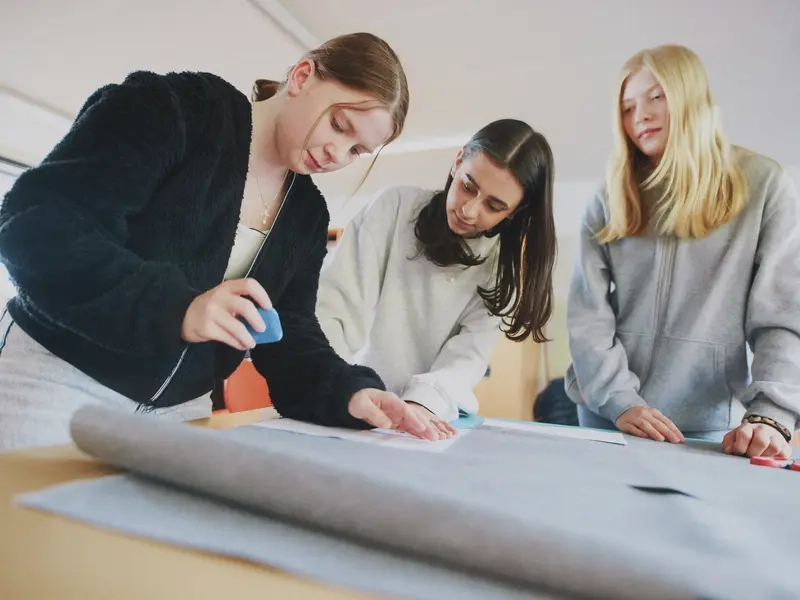 Mit Nadel und Faden hauchen sie ausgemusterter Kleidung und alten Stoffen neues Leben ein: Schüler*innen der Integrativen Gesamtschule (IGS) Wallrabenstein erlernen bei einem Upcycling-Projekt den kreativen Umgang mit der Nähmaschine. Mit dabei sind auch Kinder und Jugendliche mit Fluchterfahrung und Behinderung.
